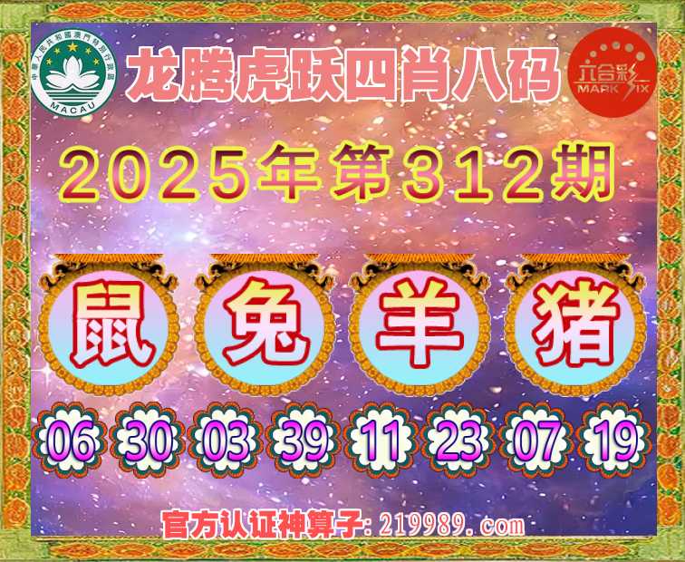 311期:『龙腾虎跃』 🎖️四肖八码🎖️【猴虎鼠】开:蛇37