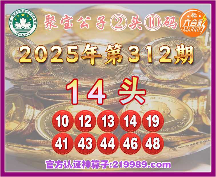 312期:〖聚宝公子〗 🎆②头⑩码🎆【14头】开:14