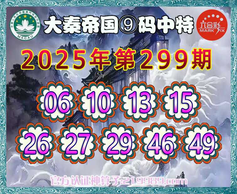 299期: 👘《大秦帝国》 👘⑨码中特👘开:49