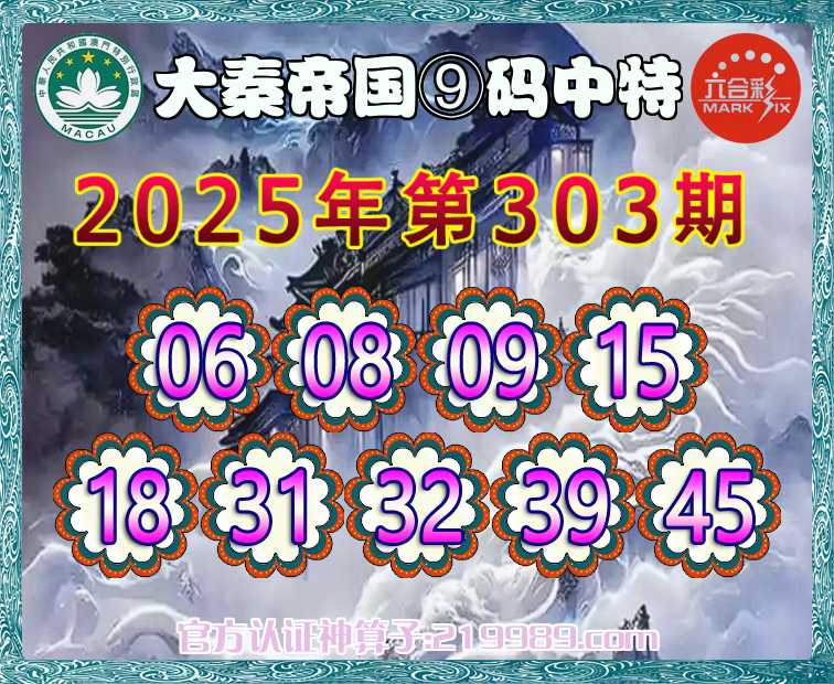 303期: 👘《大秦帝国》 👘⑨码中特👘开:15