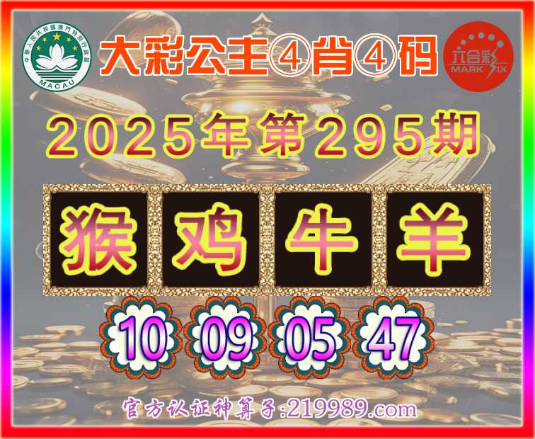 295期:《大彩公主》 🍒④肖④码🍒【猴鸡羊】【10.09.05.47】开:牛05