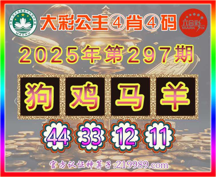 297期:《大彩公主》 🍒④肖④码🍒【鸡马羊】【44.33.12.11】开:狗44