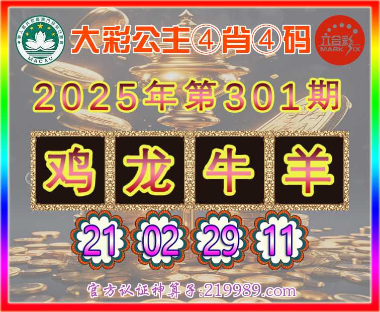 301期:《大彩公主》 🍒④肖④码🍒【鸡龙羊】【21.02.29.11】开:牛05