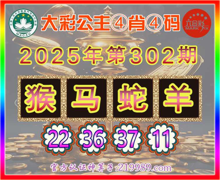 302期:《大彩公主》 🍒④肖④码🍒【马蛇羊】【22.36.37.11】开:猴22