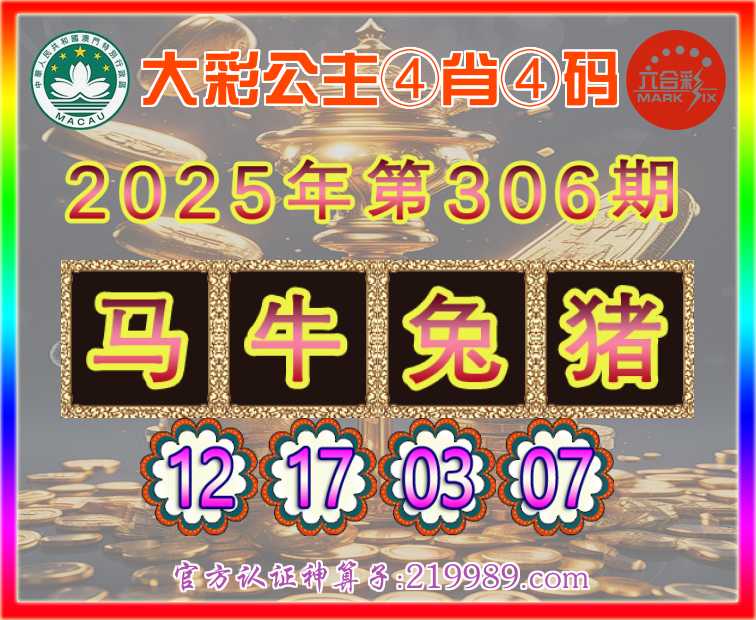 306期:《大彩公主》 🍒④肖④码🍒【马兔猪】【12.17.03.07】开:牛17