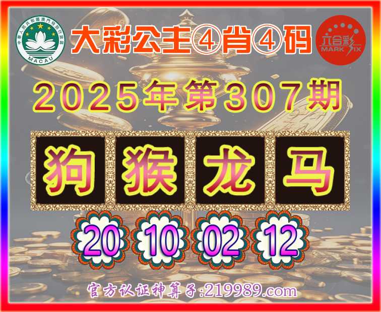 307期:《大彩公主》 🍒④肖④码🍒【猴龙马】【20.10.02.12】开:狗20