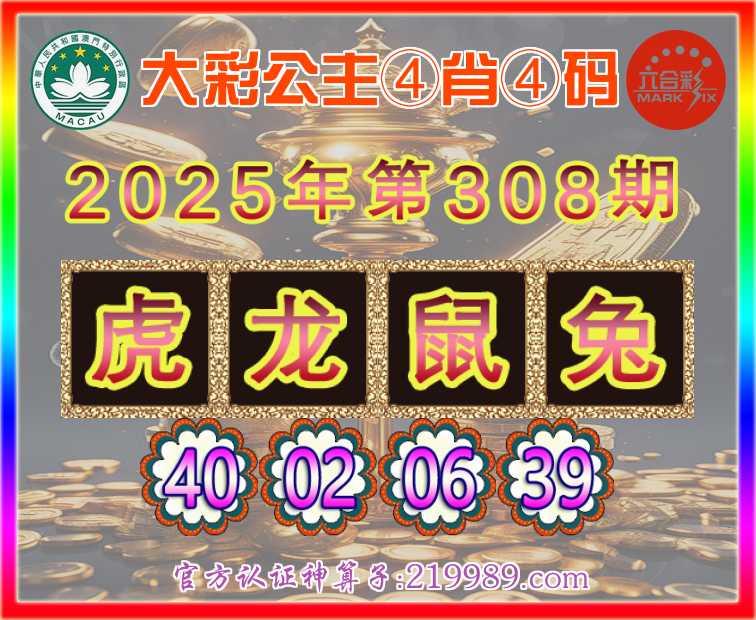 308期:《大彩公主》 🍒④肖④码🍒【虎龙鼠】【40.02.06.39】开:兔39