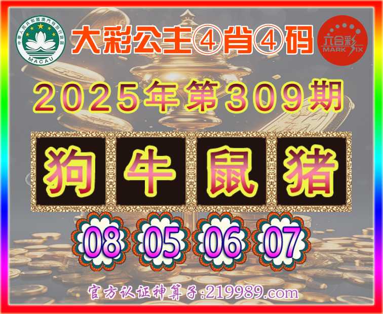 309期:《大彩公主》 🍒④肖④码🍒【狗牛猪】【08.05.06.07】开:鼠06