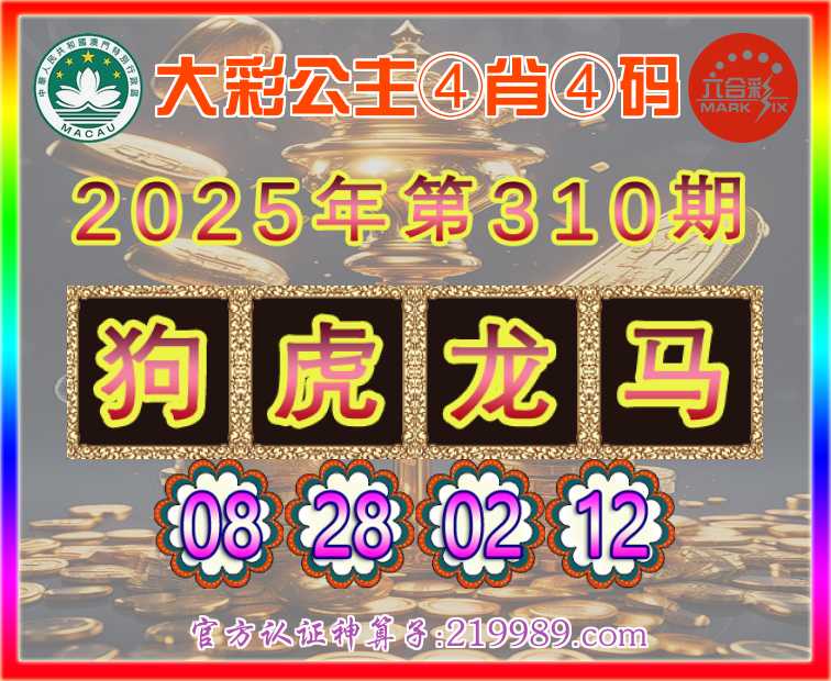 310期:《大彩公主》 🍒④肖④码🍒【狗龙马】【08.28.02.12】开:虎16