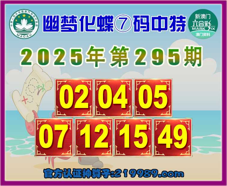 295期:【幽梦化蝶】 🍎⑦码中特🍎【02.04.05.07.12.15.49】开:05