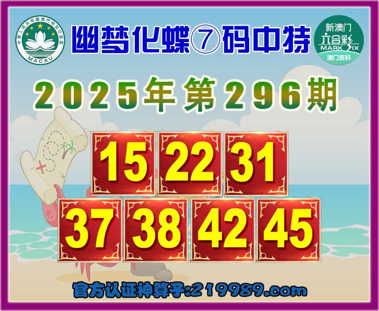296期:【幽梦化蝶】 🍎⑦码中特🍎【15.22.31.37.38.42.45】开:22
