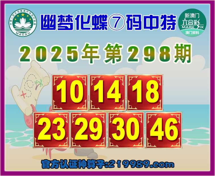 298期:【幽梦化蝶】 🍎⑦码中特🍎【10.14.18.23.29.30.46】开:23