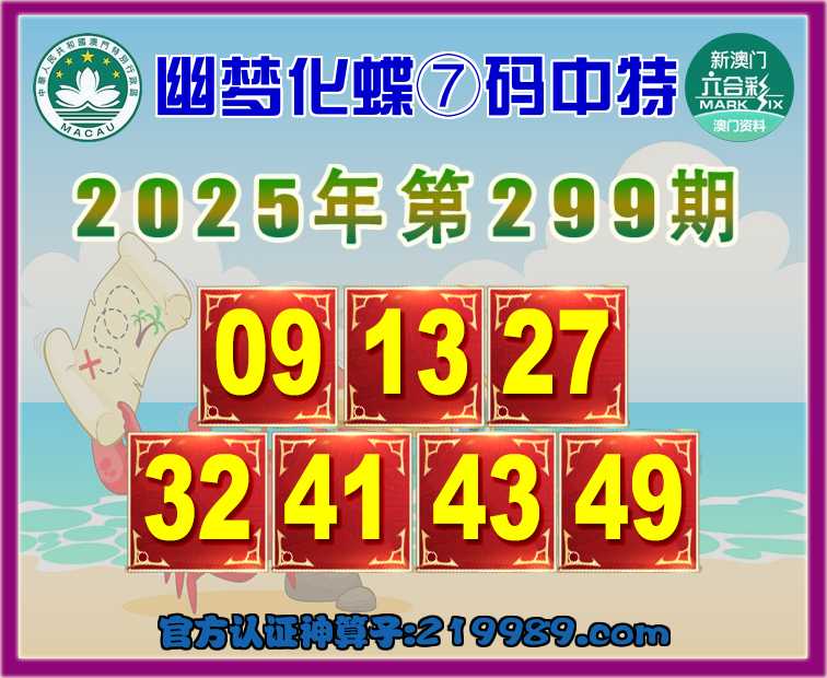 299期:【幽梦化蝶】 🍎⑦码中特🍎【09.13.27.32.41.43.49】开:49