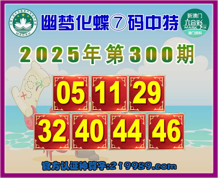 300期:【幽梦化蝶】 🍎⑦码中特🍎【05.11.29.32.40.44.46】开:40