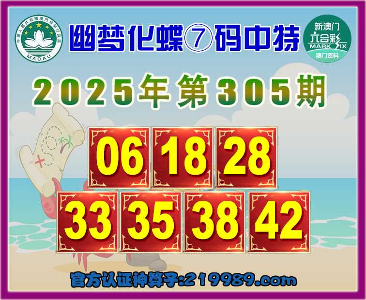 305期:【幽梦化蝶】 🍎⑦码中特🍎【06.18.28.33.35.38.42】开:42