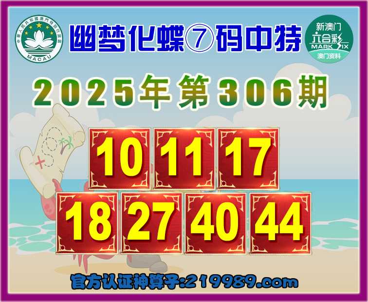 306期:【幽梦化蝶】 🍎⑦码中特🍎【10.11.17.18.27.40.44】开:17