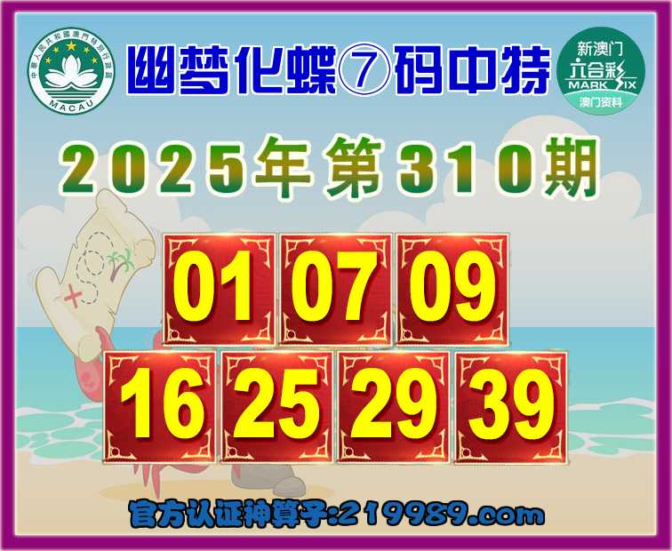 310期:【幽梦化蝶】 🍎⑦码中特🍎【01.07.09.16.25.29.39】开:16