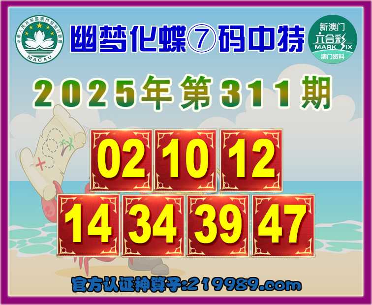 311期:【幽梦化蝶】 🍎⑦码中特🍎【02.10.12.14.34.39.47】开:37