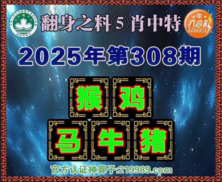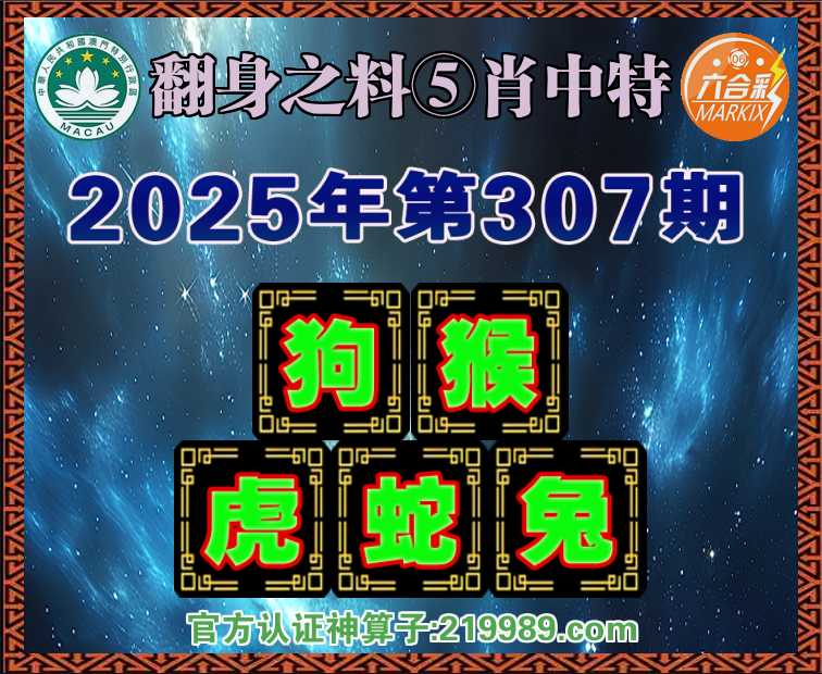 307期: 🗡『翻身之料』 🗡⑤肖中特🗡【.猴.虎.蛇.兔】开:狗20