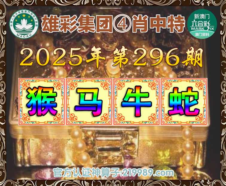 296期: 雄彩集团 😳④肖中特😳【.马.牛.蛇】开:猴22