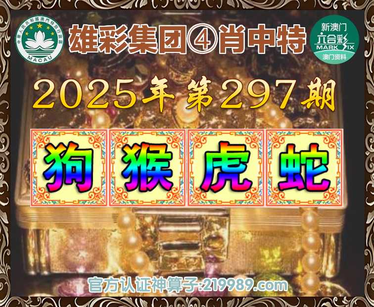 297期: 雄彩集团 😳④肖中特😳【.猴.虎.蛇】开:狗44