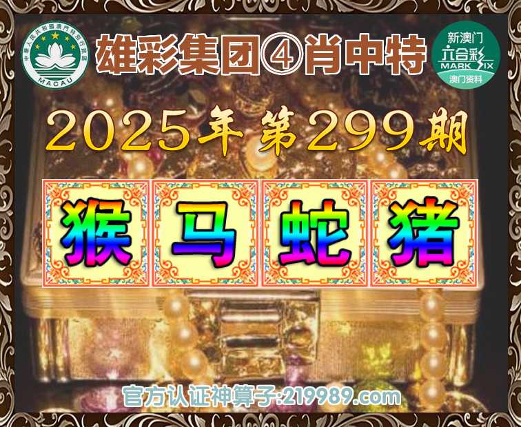 299期: 雄彩集团 😳④肖中特😳【猴.马..猪】开:蛇49