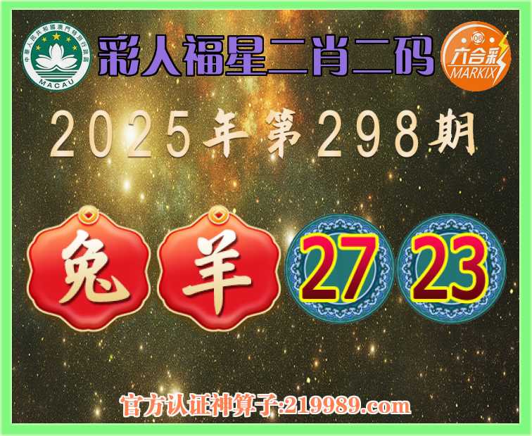 298期:『彩人福星』 🧧二肖二码🧧【兔】【27.23】开:羊23