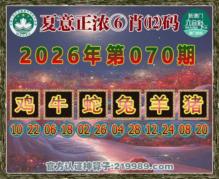 070期:【夏意正浓】 🥧⑥肖⑿码🥧【鸡牛蛇兔羊猪】开:00准
