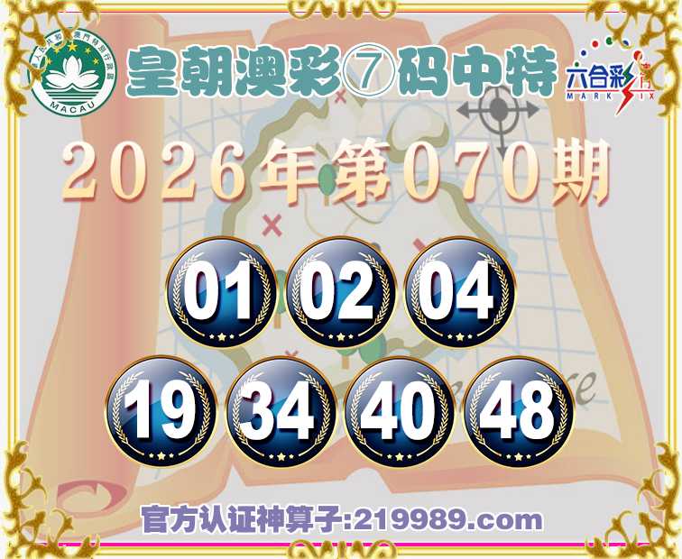 070期: 🎆『皇朝澳彩』 🎆⑦码中特🎆【01.02.04.19.34.40.48】开:00准