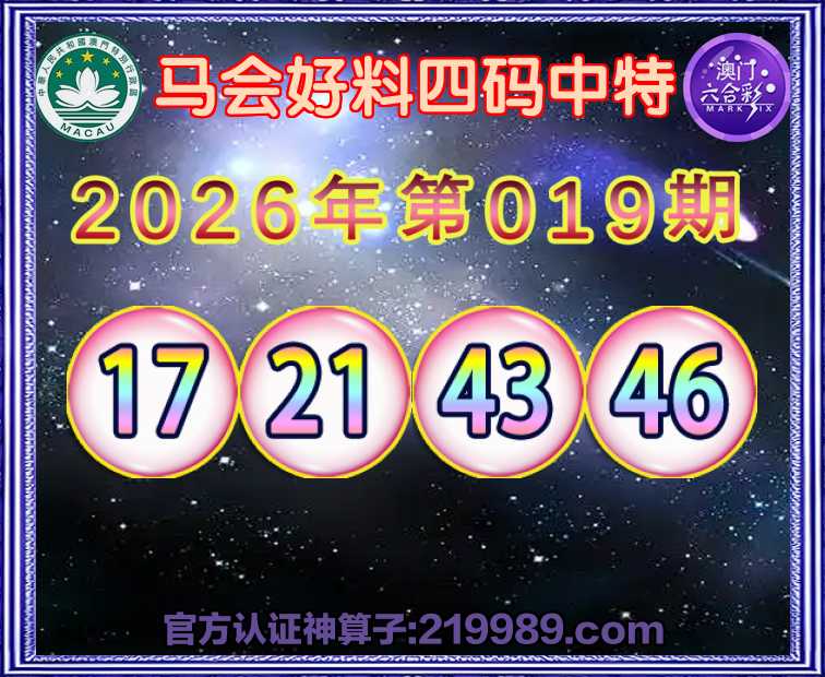 019期:《马会好料》 😜四码中特😜【17.21.43.46】开:46